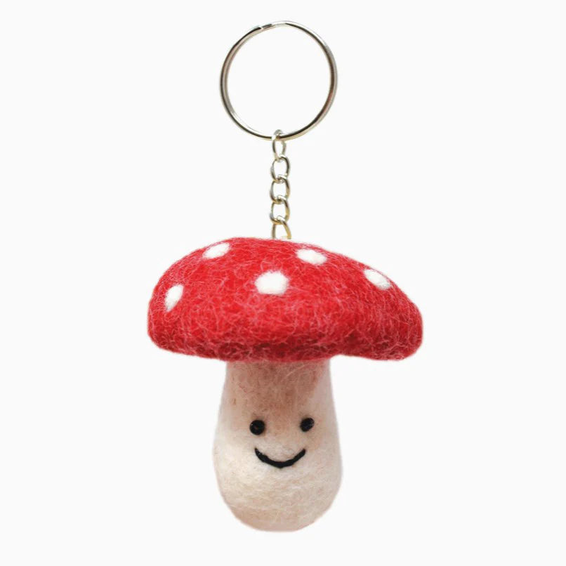 Introducing the adorable fair trade handmade pure wool Red Mushroom keyring!